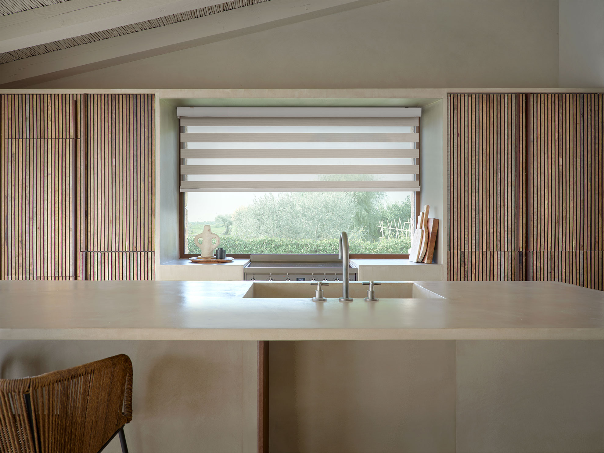 El diseño distintivo de sus líneas horizontales resalta la elegancia clásica de una persiana, potenciada por una amplia variedad de colores y texturas que se adaptan a cualquier estilo de decoración
